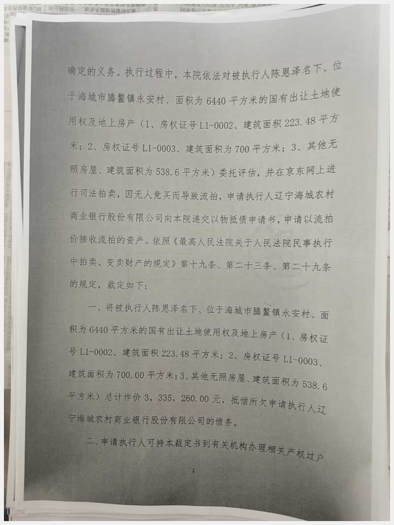 174號 海城市騰鰲鎮(zhèn)永安村房產及國有土地使用權