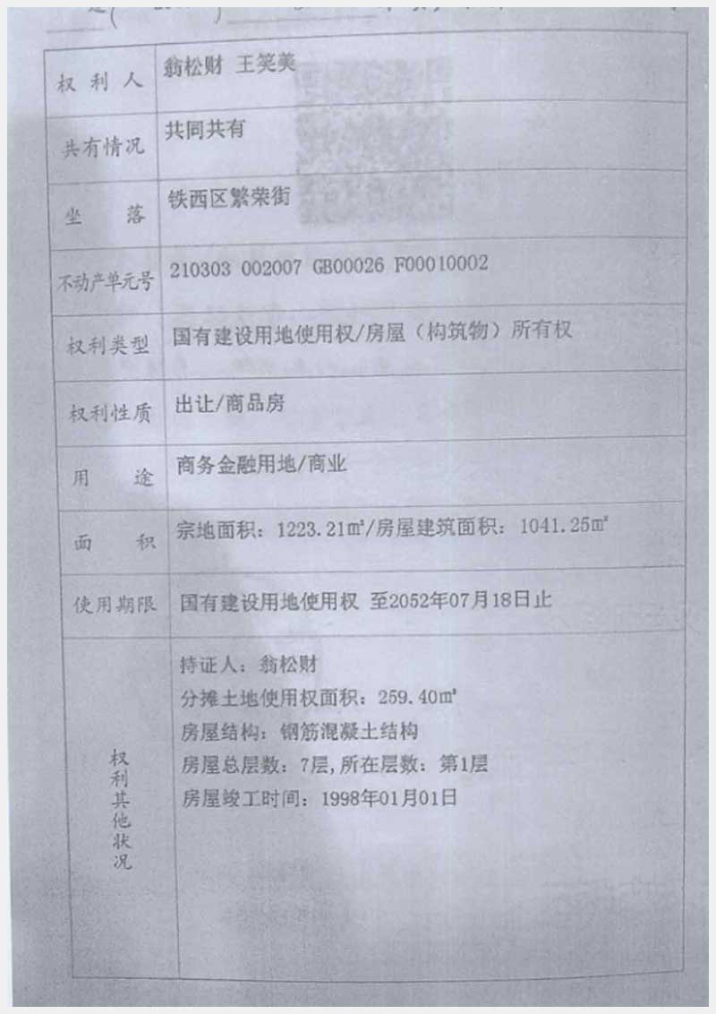 名稱:鞍山市鐵西區(qū)繁榮街房產(chǎn) 面積:1041.25㎡ 瀏覽次數(shù):1218