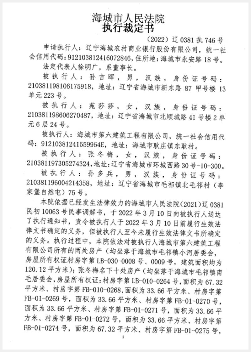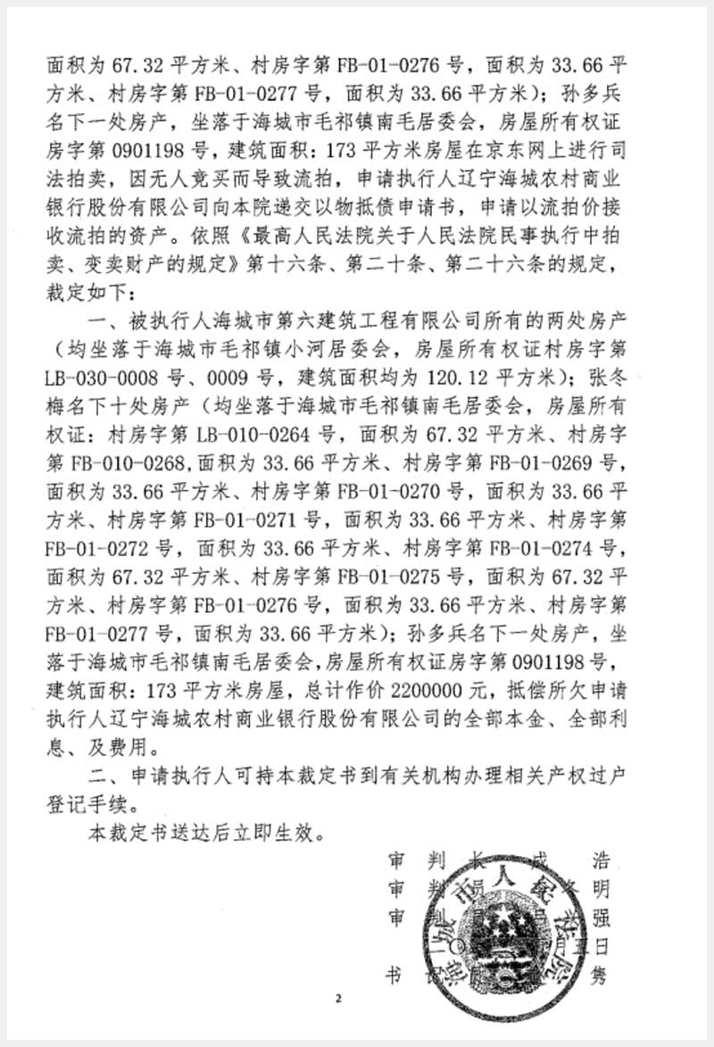 地址:海城市毛祁鎮(zhèn)小河居委會(huì) 標(biāo)的號(hào):216-2
