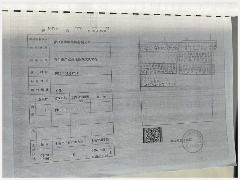 7號(hào) 營口市產(chǎn)業(yè)基地新湖大街95號(hào)房產(chǎn)及土地使用權(quán)