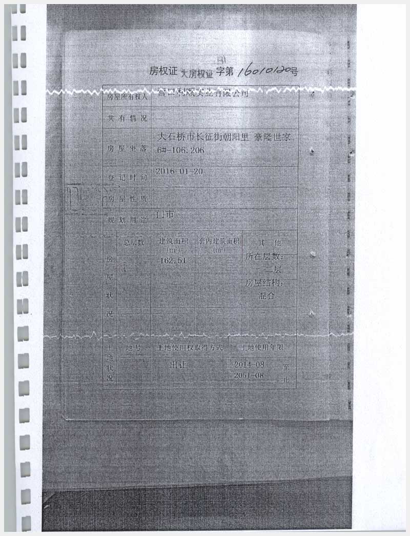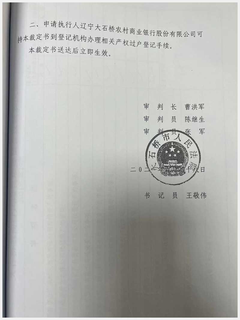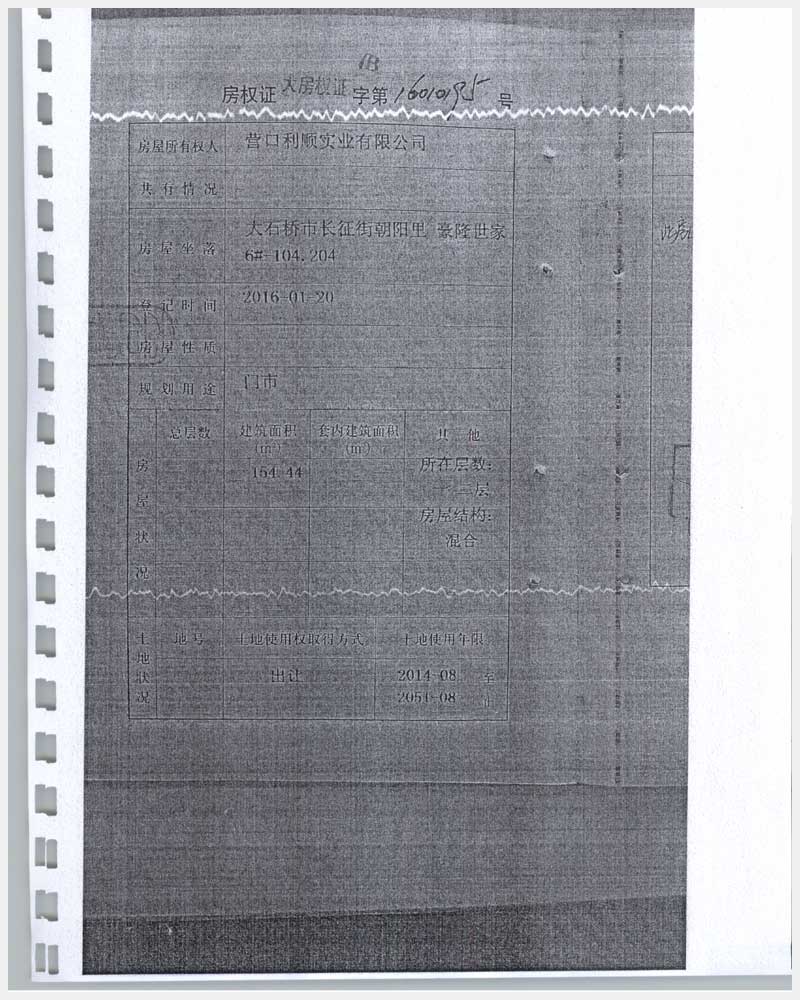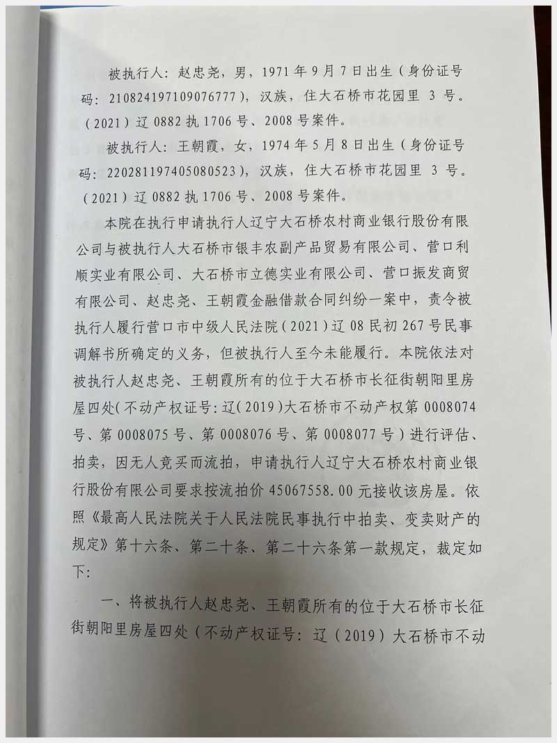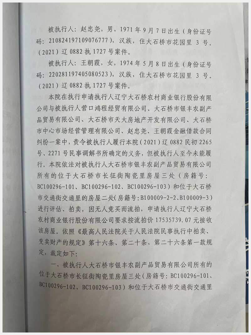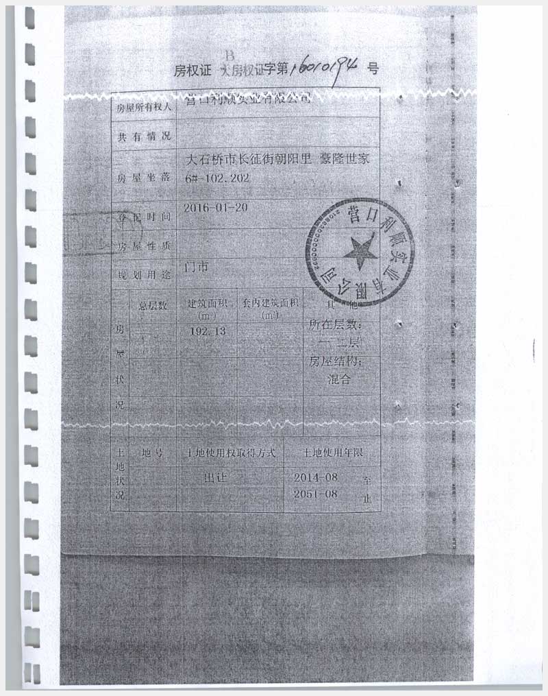地址:大石橋市長征街朝陽里豪隆世家 標(biāo)的號:8