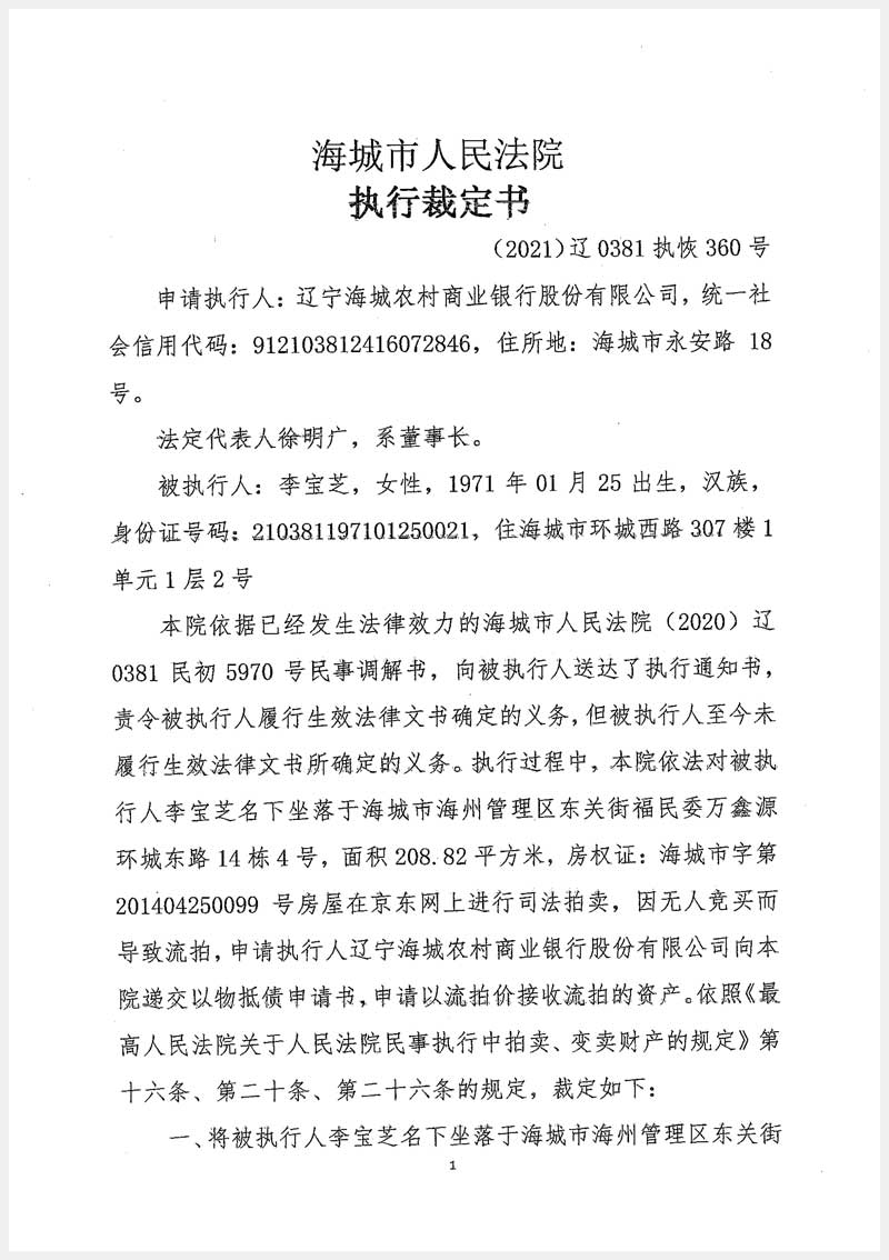 261號 海城市海州管理區(qū)東關(guān)街富民委萬鑫源環(huán)城東路14棟4號房產(chǎn)