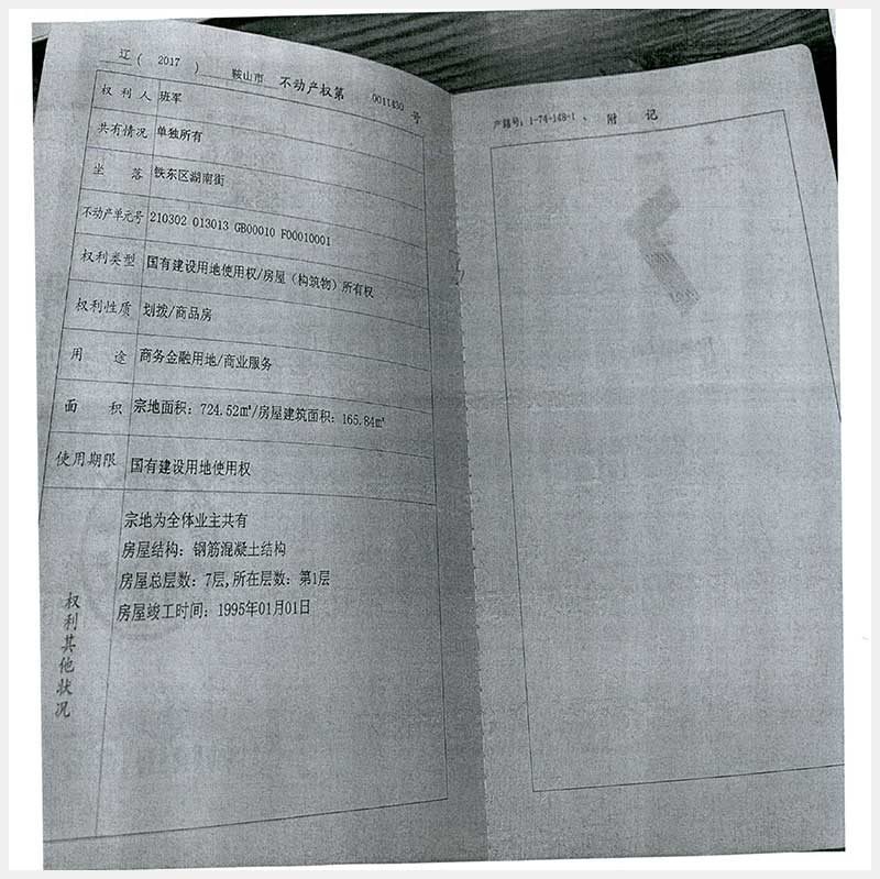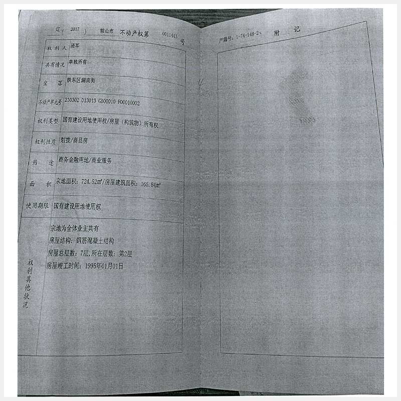 名稱:鞍山市鐵東區(qū)湖南街175號4處房產(chǎn) 面積:135.74㎡—165.84㎡ 瀏覽次數(shù):193