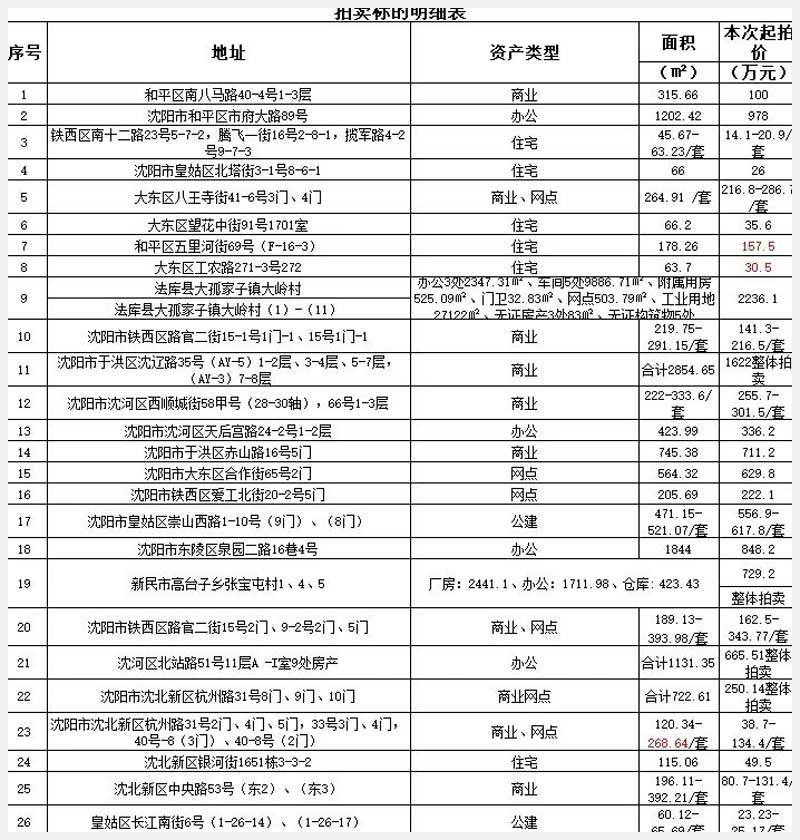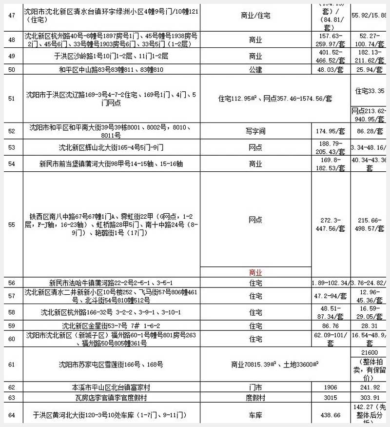 沈陽(yáng)農(nóng)商行抵債資產(chǎn)