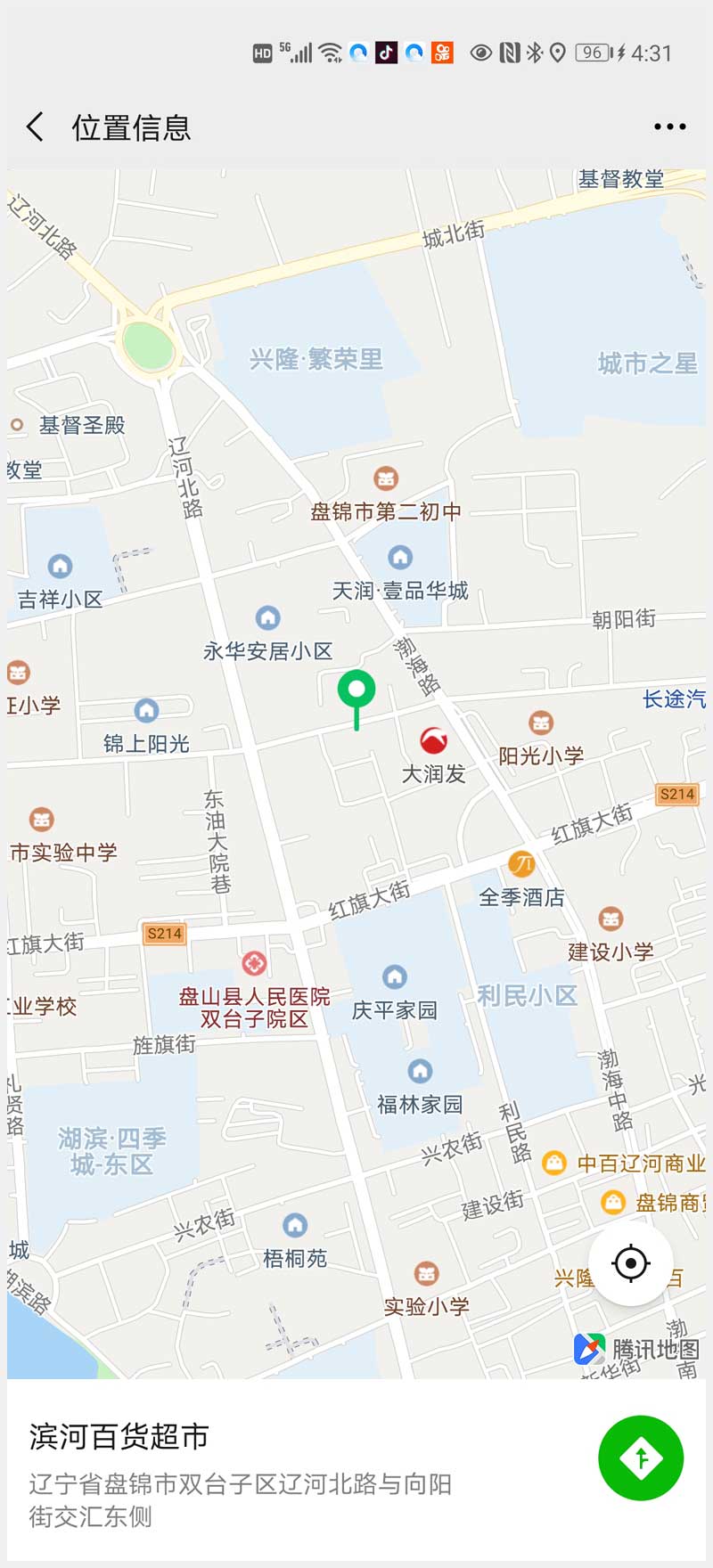 12號(hào) 盤錦雙臺(tái)子區(qū)綠野小區(qū)三處商網(wǎng)(濱河百貨超市)