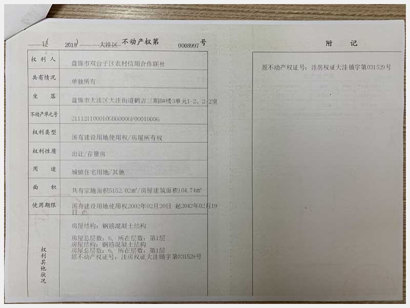 地址:盤錦市大洼鎮(zhèn)興盛街 標的號:19