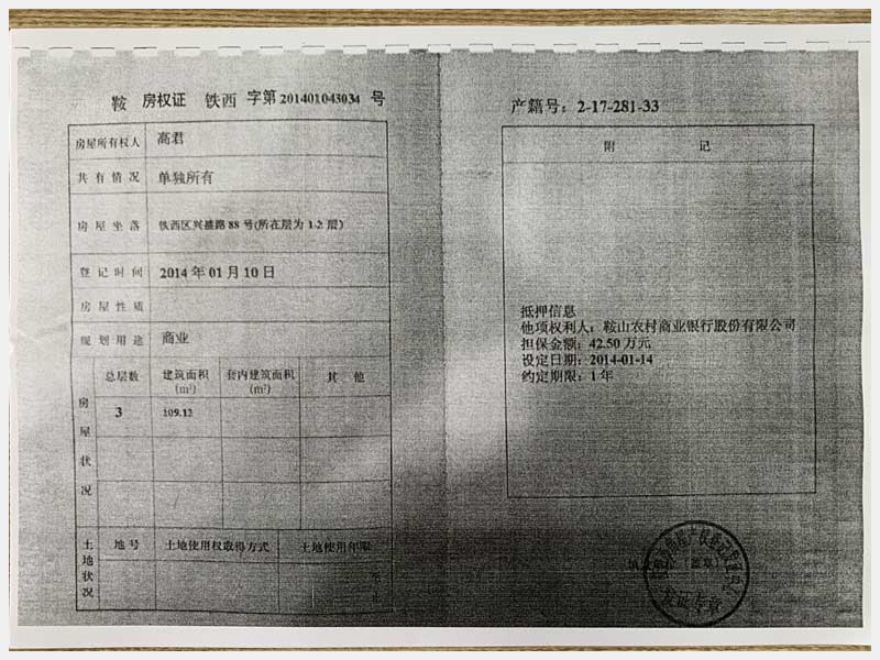 名稱:鞍山市鐵西區(qū)興盛路88號2處房產(chǎn) 面積:109.12㎡/每處 瀏覽次數(shù):1794