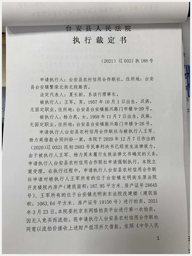地址:臺安鎮(zhèn)光明街東原法院開發(fā)樓 標的號:78-1