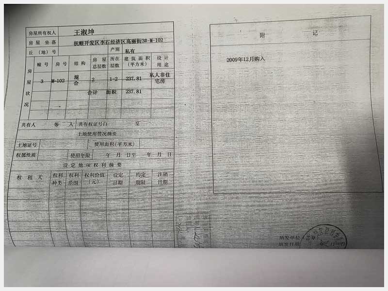 4號 撫順開發(fā)區(qū)李石經(jīng)濟(jì)區(qū)高麗街3#-M-102房產(chǎn)