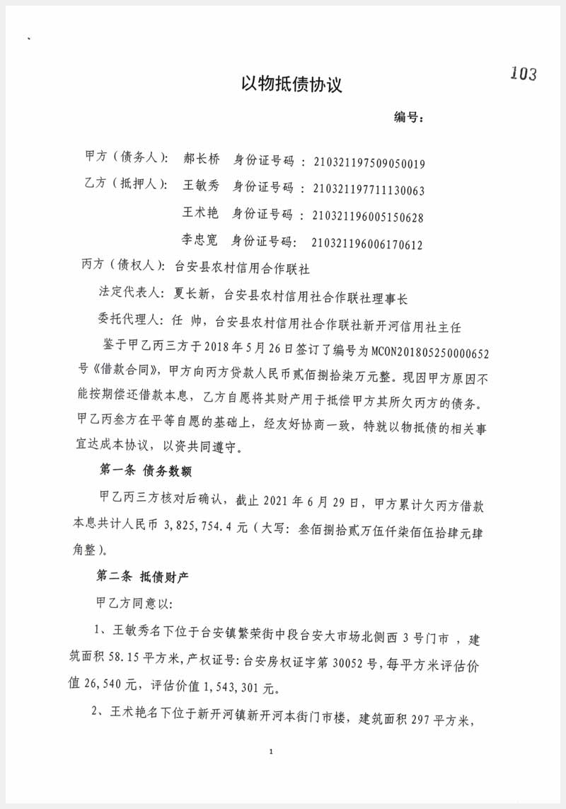 113-1號 臺安縣新開河鎮(zhèn)新開河本街房產(chǎn)及集體土地使用權(quán)