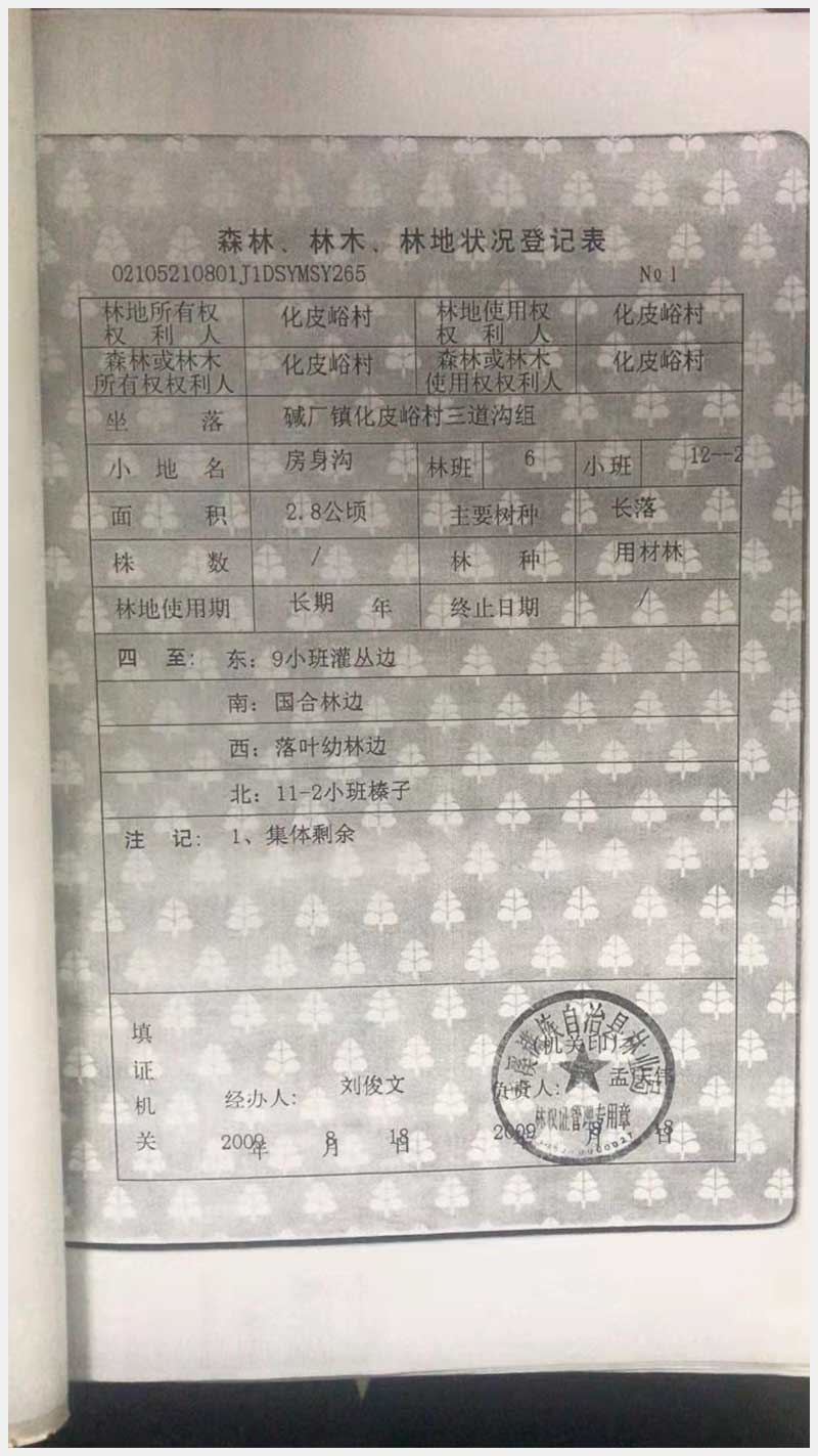 95號(hào) 本溪滿(mǎn)族自治縣堿廠鎮(zhèn)化皮峪村三道溝林權(quán)