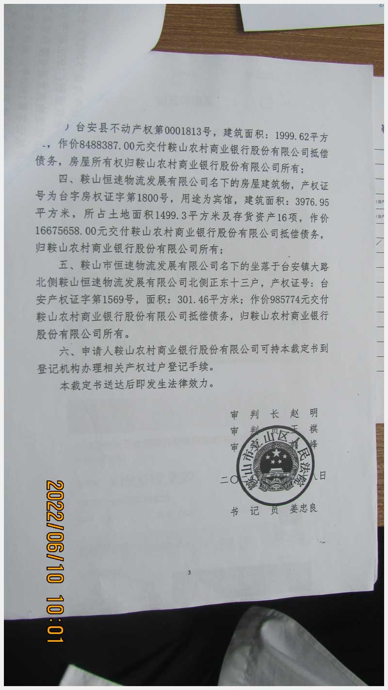 名稱:臺安鎮(zhèn)臺大路北側(cè)鞍山恒速物流發(fā)展有限公司北側(cè)正房東十三戶房產(chǎn) 面積:301.46㎡ 瀏覽次數(shù):1039
