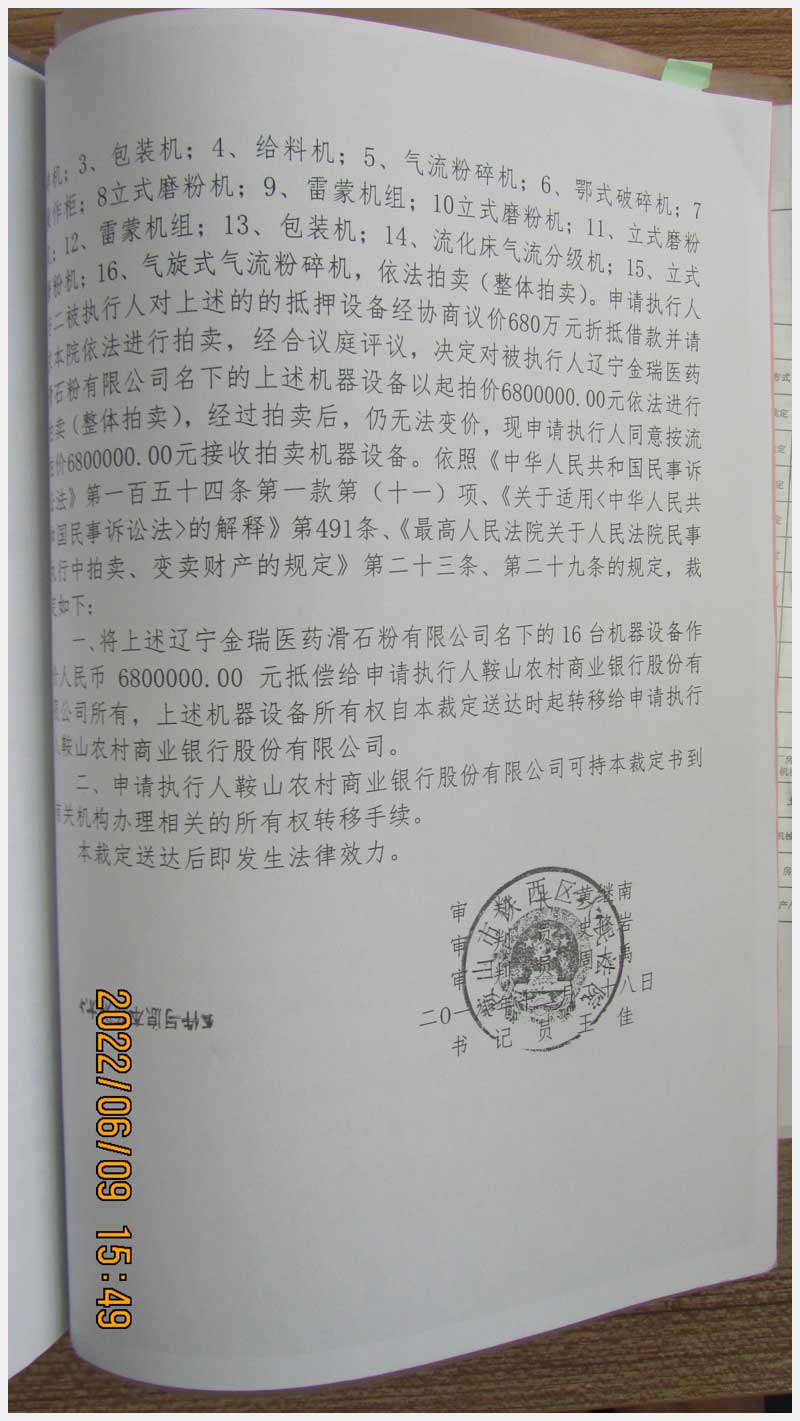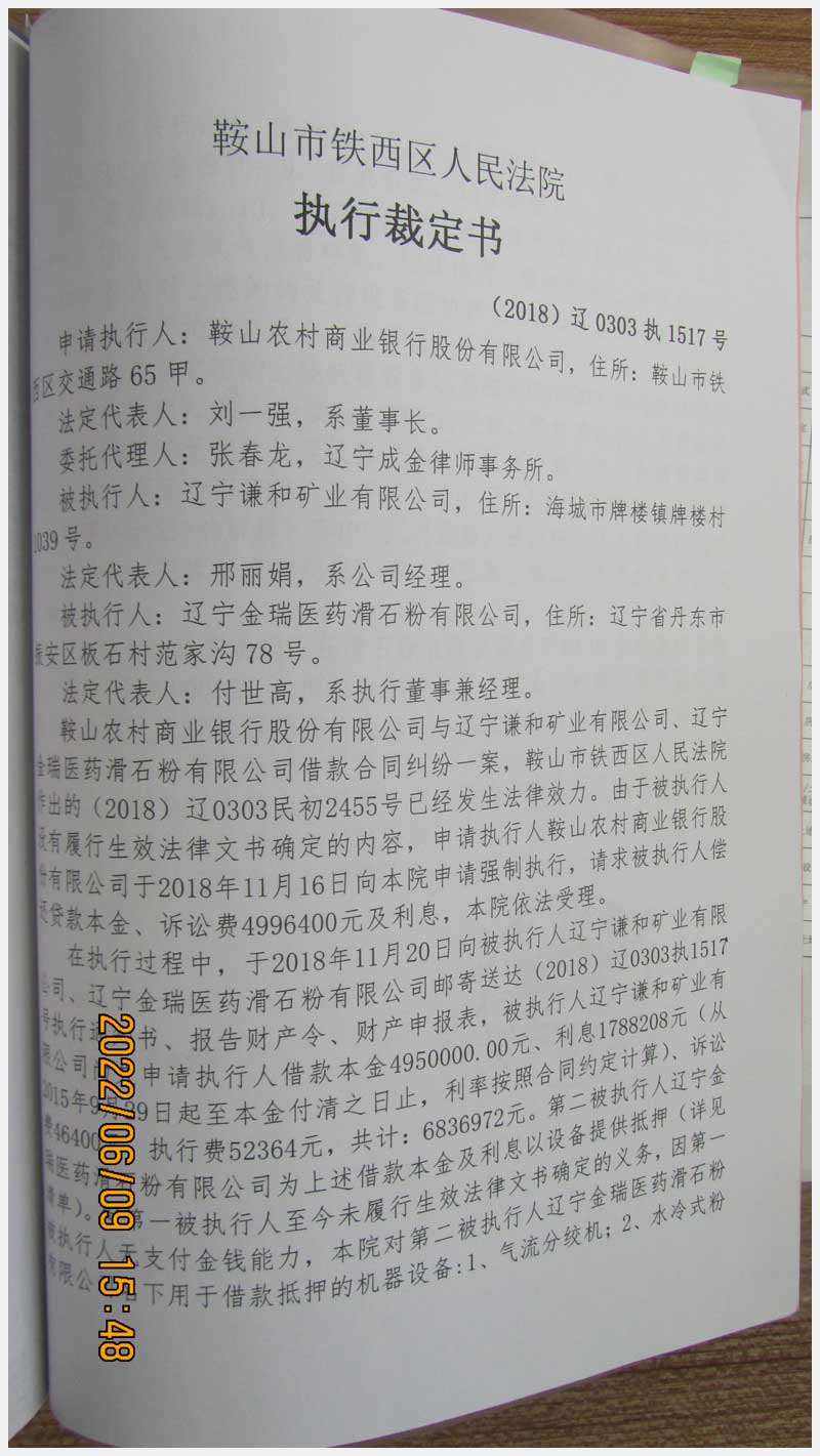 地址:遼寧謙和礦業(yè)有限公司院內(nèi) 標(biāo)的號(hào):93