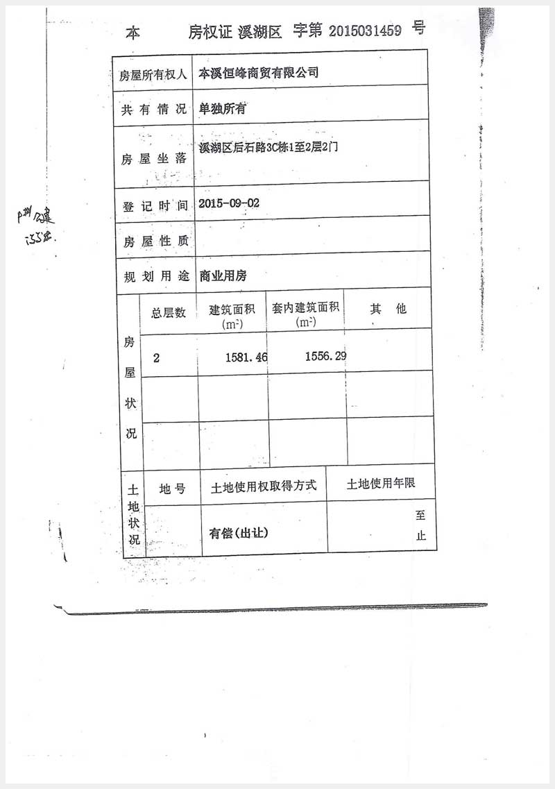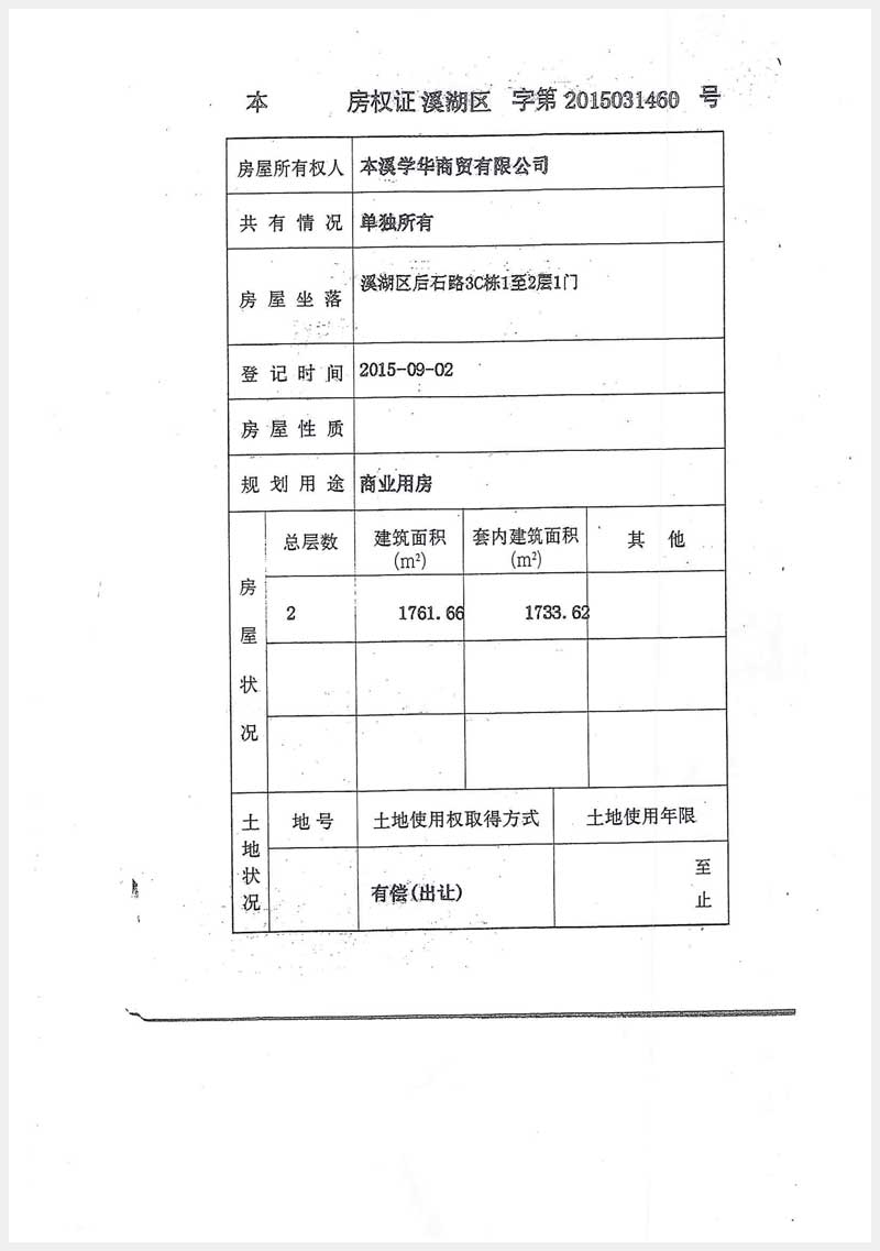 名稱:本溪市溪湖區(qū)后石路3C棟1至2層1門、2門房產(chǎn) 面積:1門:1761.66㎡;2門:1581.46㎡ 瀏覽次數(shù):1071