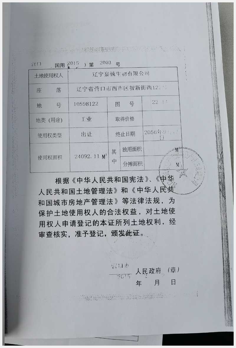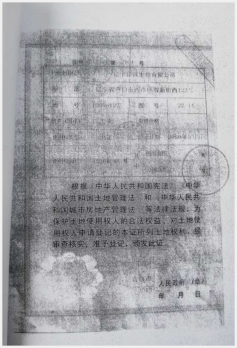地址:營(yíng)口市智新街西122號(hào) 標(biāo)的號(hào):2