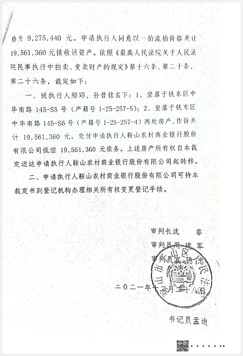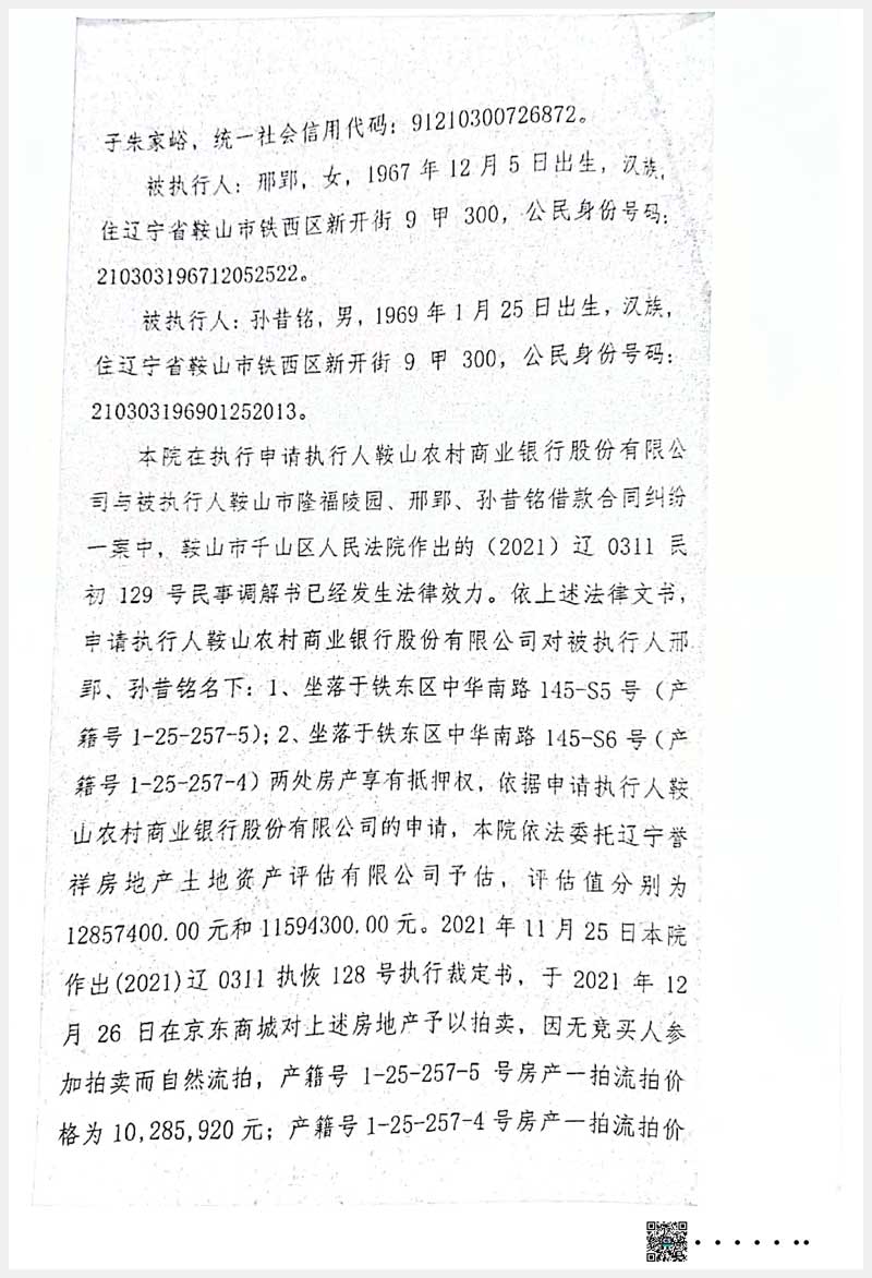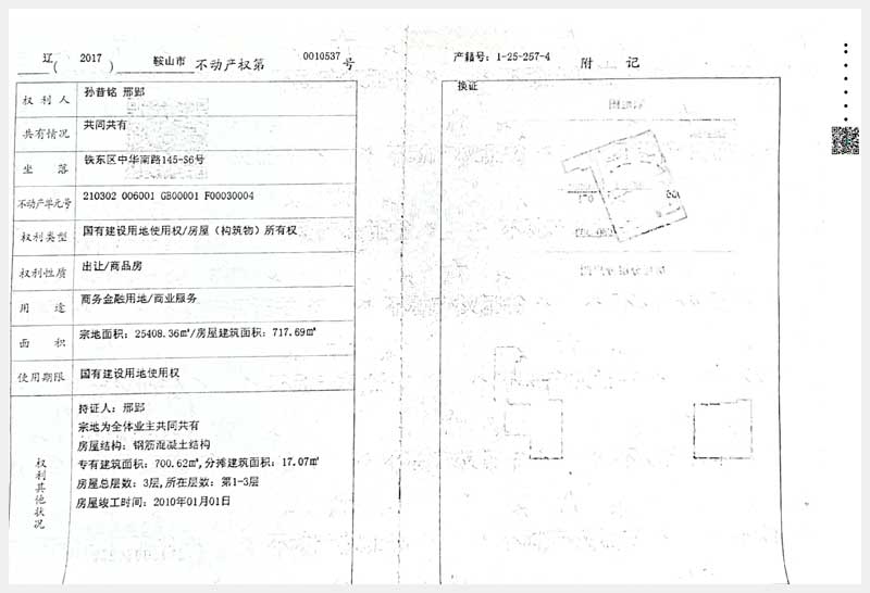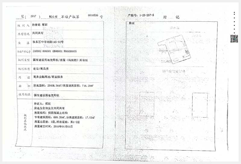 100號(hào) 鞍山市鐵東區(qū)中華南路145-S5、145-S6號(hào)房產(chǎn)