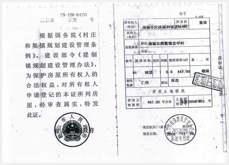 322號 位于海城市騰鰲鎮(zhèn)金甲村廠房、 集體土地使用權(quán)
