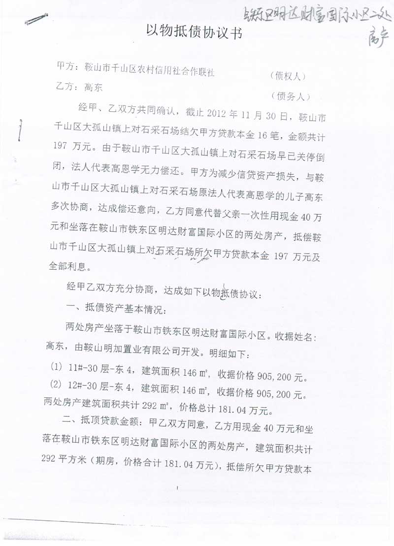 地址: 鞍山市鐵東區(qū)明達財富國際小區(qū) 標的號:40-1