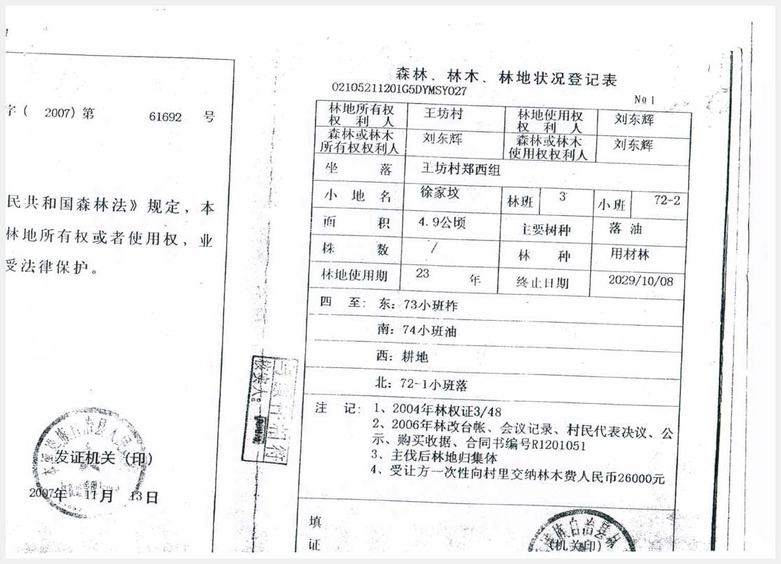 名稱:本溪滿族自治縣草河城鎮(zhèn)王坊村鄭西組落葉松人工林 面積:73.5畝 瀏覽次數(shù):2668