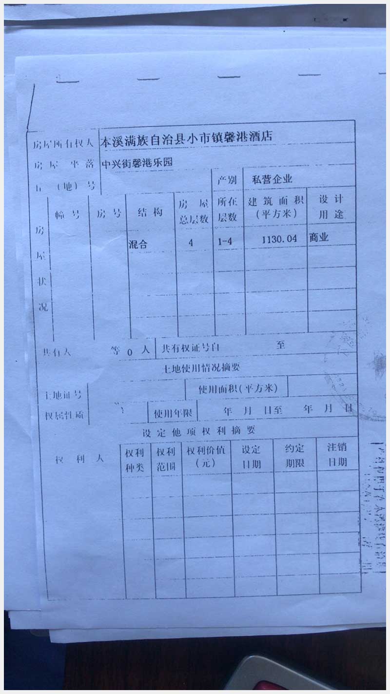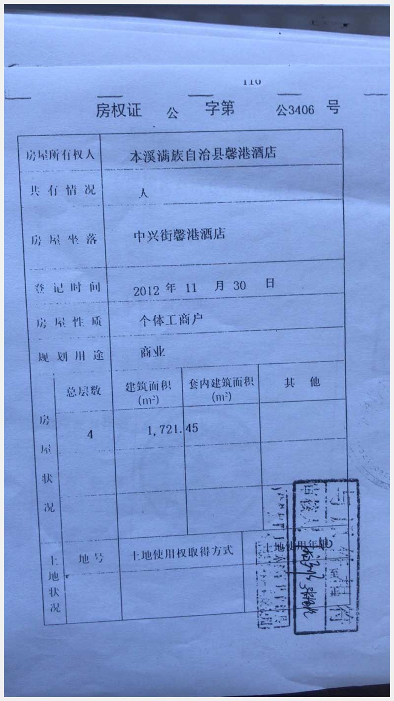名稱:本溪滿族自治縣中興街馨港樂園馨港酒店房產(chǎn)及土地 面積:房產(chǎn):有證:4440.21㎡,無證:672.51㎡;土地:713㎡ 瀏覽次數(shù):1399