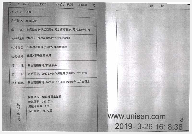 地址:臺(tái)安縣臺(tái)安鎮(zhèn)紅旗路11號(hào)水岸茗都 標(biāo)的號(hào):98
