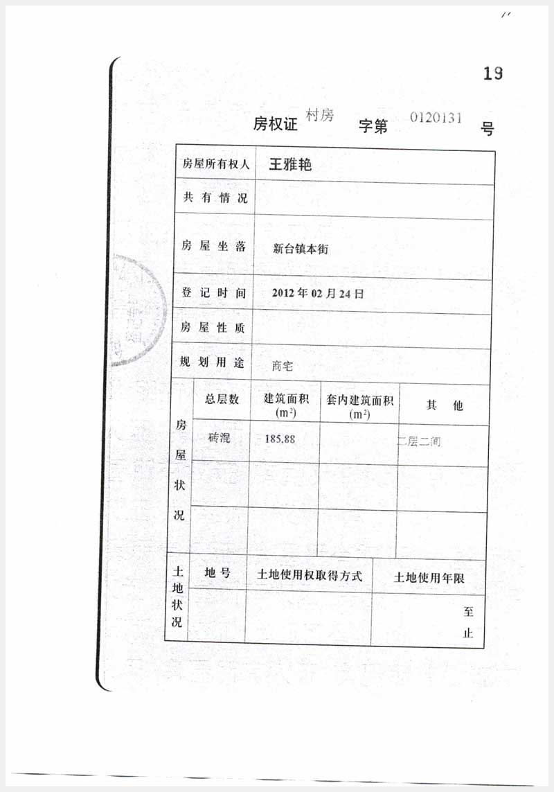 名稱(chēng):臺(tái)安縣新臺(tái)鎮(zhèn)本街2處房產(chǎn) 面積:185.88㎡、186.96㎡ 瀏覽次數(shù):1263