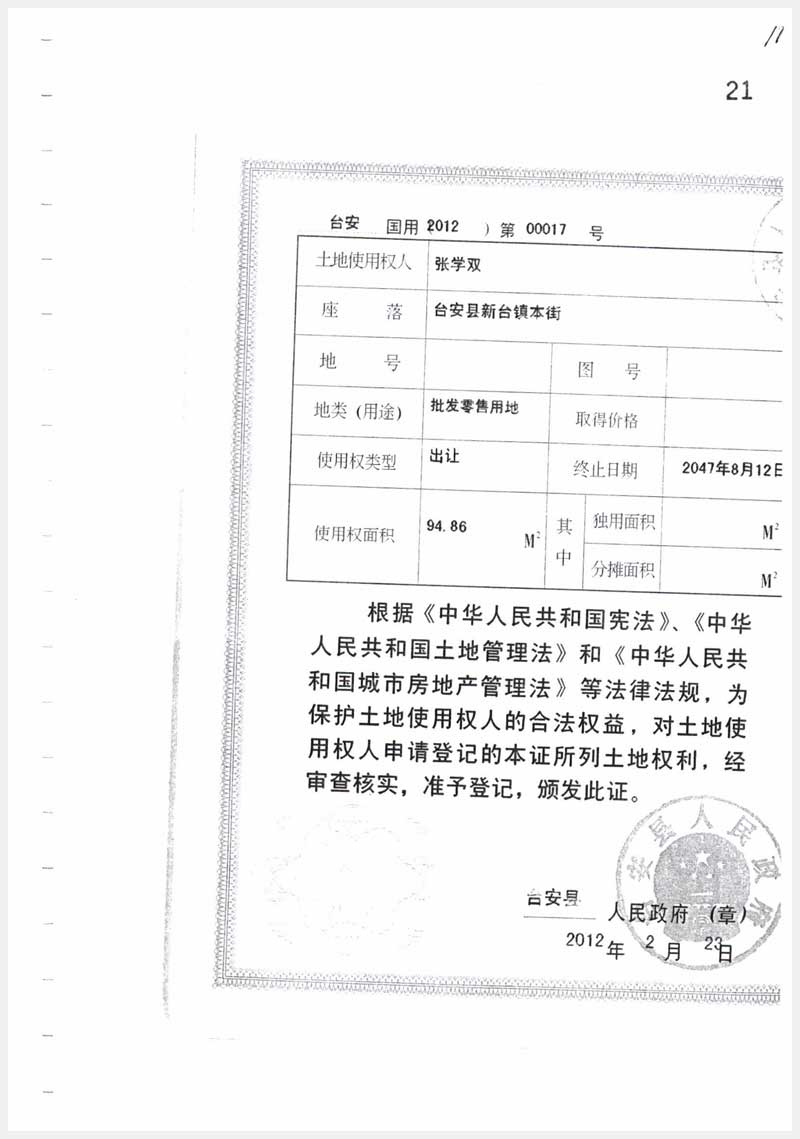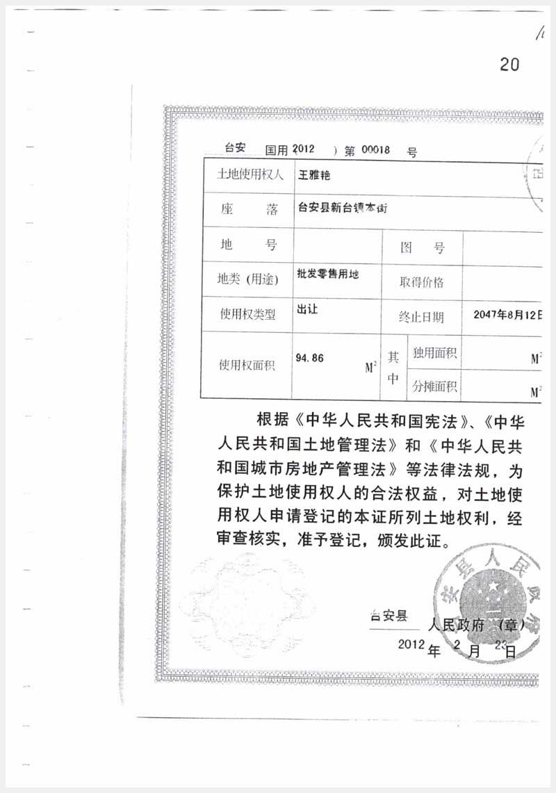 地址:臺(tái)安縣新臺(tái)鎮(zhèn) 標(biāo)的號(hào):107