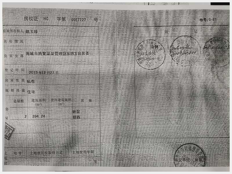 名稱:海城市騰鰲溫泉管理區(qū)東四方臺居委會房產(chǎn) 面積:394.24㎡ 瀏覽次數(shù):1324